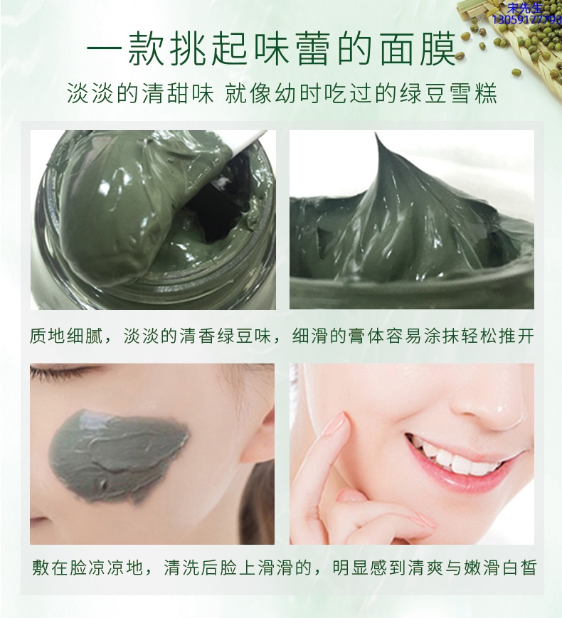 俏十岁_泥膜深层清洁补水保湿绿豆泥膜 泥膜oem/OEM加工贴牌